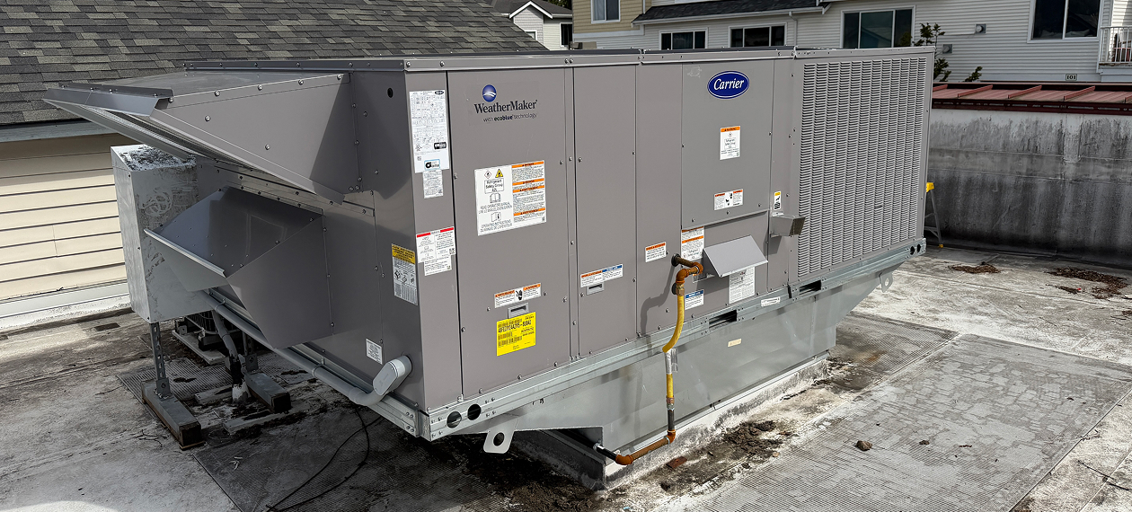 We work across King County and Snohomish County — Bellevue, Kirkland, Redmond, Everett, Bothell, and surrounding areas. Commercial rooftop unit replacement, including large equipment with crane access and custom fabrication, is work we do regularly.
